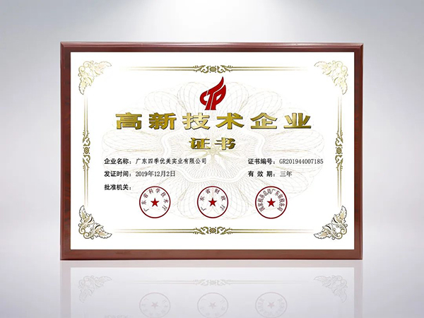 近日,四季優(yōu)美榮膺由廣東省科技廳、廣東省財政廳、廣東省稅務(wù)局聯(lián)合頒發(fā)的國家級高新技術(shù)企業(yè)認(rèn)定證書,科技研發(fā)實力與持續(xù)創(chuàng)新能力再獲肯定。