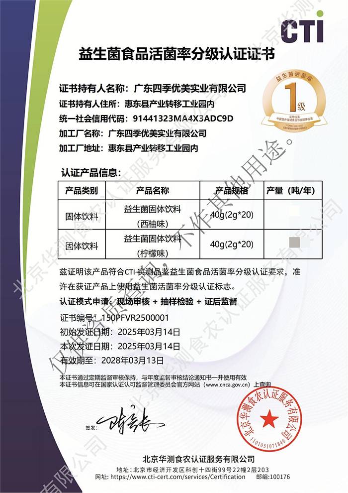近日,養(yǎng)顧問益生菌固體飲料成功獲得益生菌食品活菌率分級認(rèn)證一級證書。實(shí)驗(yàn)顯示:在嚴(yán)格模擬日常保存條件下,且儲(chǔ)存達(dá)三分之一保質(zhì)期時(shí),其活菌率依然保持≥50%的卓越水平,這意味著每條養(yǎng)顧問益生菌都能兌現(xiàn)“出廠承諾”,真正實(shí)現(xiàn)“長效守護(hù)”。
